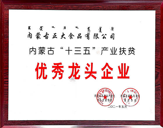 內蒙古正大有限公司、內蒙古正大食品有限公司分別榮獲內蒙古“十三五”產業扶貧優秀龍頭企業!