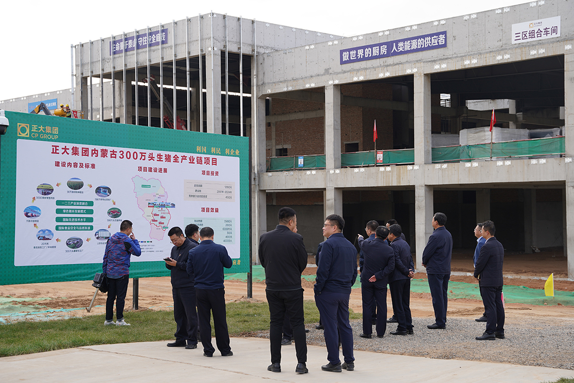 10月7日,內蒙古自治區黨委常委、呼和浩特市委書記包鋼,呼和浩特市委副書記、市長賀海東,市人大常委會主任常培忠,市委常委、秘書長劉繼英,副市長徐守冀一行赴和林格爾縣調研產業發展情況期間蒞臨正大集團內蒙古300萬頭生豬全產業鏈食品加工廠考察指導。正大集團農牧食品企業(中國)副董事長董忠、內蒙古區副總裁彭天泉陪同考察。