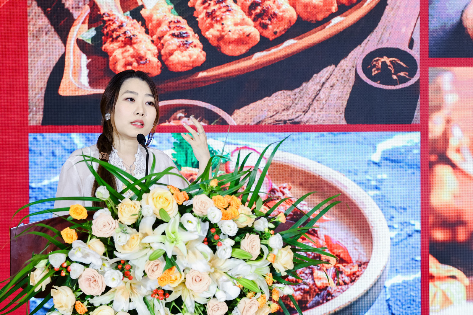 在各國美食文化分享環節,泰王國駐華大使館商務公使鄭美云分享了“微笑國度”的別樣風情。她表示,美食作為超越國界的通用語言,承載著文化交流與經濟繁榮的雙重使命。泰國作為“世界廚房”,其茉莉香米、熱帶水果及遍布世界的泰國餐廳是國家經濟的重要支柱。泰國菜肴以其甜、酸、咸、辣、鮮五味的精妙融合聞名于世,其開放包容、博采眾長的特點正是泰國人民的真實寫照。值此中泰建交50周年之際,誠邀廣大消費者來活動現場品嘗地道傳統佳肴,共同體驗豐富的泰國文化遺產。