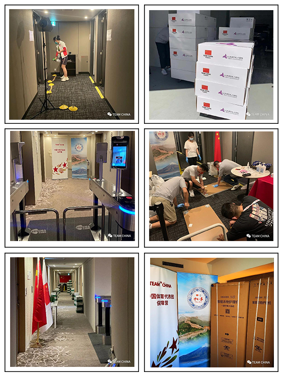 一是做好工作場所及保障營團組的防疫和安全管理。保障營始終堅守“防疫是第一要務”的要求,并針對運營場所特點制定了防疫流程和安保措施:防疫官助理監督所有人員必須佩戴口罩并完成每日檢測上傳;所有人員不在酒店餐廳用餐,取代以符合要求的餐飲供應商提供餐盒及補充食品;以自有工作團隊取代酒店服務人員提供日常服務,阻斷外界進出風險;所有外送物品均在酒店外車完成交接,酒店外設置消殺點對人員和物品進入前進行消殺;所有司機統一安排住宿,對接力人員入村前周轉和完賽人員回國前周轉進行分區管理,降低交叉風險;對租賃樓層進行封閉管理,加裝監控裝置和閘機,確保日常運營安全。此外,保障營充分調動合作企業和社會各界積極性,場地內訓練工作用水和大部分訓練器材,分別來自華潤怡寶和舒華從國內運輸的產品。另接收了星際光公司(安全消毒儀)、上海科馭健康科技(衣物消毒護理機)、福建柒牌時裝科技(防護服)、榮耀終端(手機及終端)等企業的捐贈物資用于協助工作。總體而言,保障營為東京奧運會參賽“零感染”做出了積極的努力。