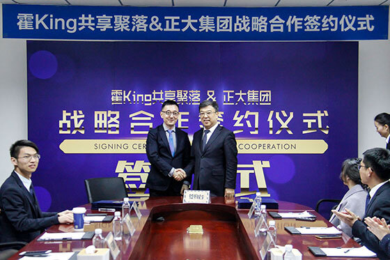 2019年4月2日下午,正大集團與霍King共享聚落戰略合作簽約儀式在紅星美凱龍北京北五環霍King共享聚落隆重舉行。正大集團農牧食品企業中國區資深副董事長于建平,霍King品牌發起人、紅星美凱龍集團總裁王偉出席簽約儀式,并代表雙方就自動售賣設備投放、標準化餐廳打造等項目簽署戰略合作協議。