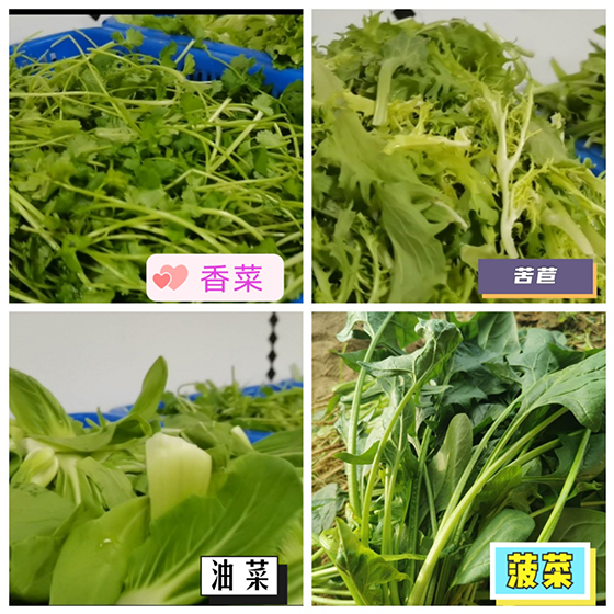2020年8月,經過預處理、洗消中心及管理中心的層層消毒把關,項目依據公司相關生物安全規章制度,將綠色有機蔬菜種子運至項目區。在項目區內種植了香菜、油菜、苦苣、菠菜等蔬菜。10月,經過場區員工精心照料下的蔬菜迎來第一次大豐收,安全綠色的蔬菜經共同采摘被送至場區中央廚房。大家品嘗著新鮮美味的綠色蔬菜,臉上洋溢著幸福的笑容。