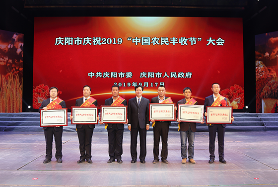 當晚,慶陽市慶祝“2019中國農民豐收節”晚會在慶陽大劇院精彩上演。正大集團農牧食品企業中國區馬繼林副董事長受邀出席了晚會。晚會伊始,省政協副主席、慶陽市委書記贠建民致辭。隨后,慶陽市委副書記盧小亨宣讀表彰獎勵決定,對全市各地涌現出的產業致富帶頭人、產業帶貧優秀企業等進行了表彰。蘭州正大以其 “331+”合作社帶動貧困群眾參與產業鏈條開發,實現抱團發展的有效脫貧模式獲得“產業帶貧優秀企業”獎。正大集團農牧食品企業甘寧區李琳興資深副總裁上臺領獎,贠建民副主席為其頒獎。