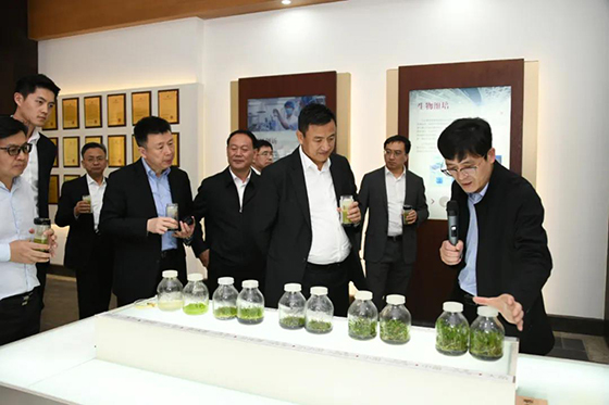 安徽省委常委、六安市委書記孫云飛(左二)帶正大集團資深副董事長兼中國區CEO楊小平(右二)參觀九仙尊石斛產業園