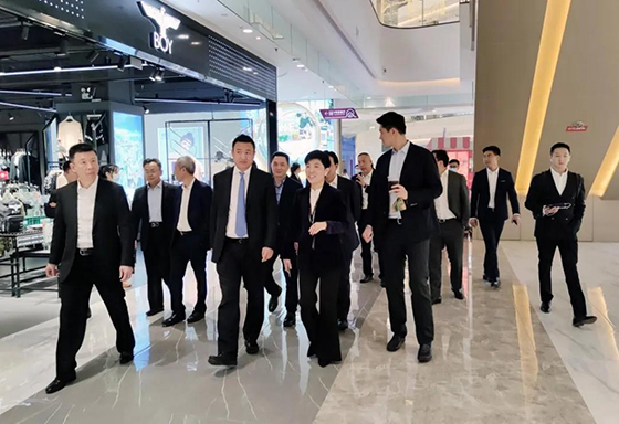 合肥正大廣場總經理房嫄(前排右二)陪同正大集團資深副董事長兼中國區CEO楊小平(前排左二)參觀合肥正大廣場