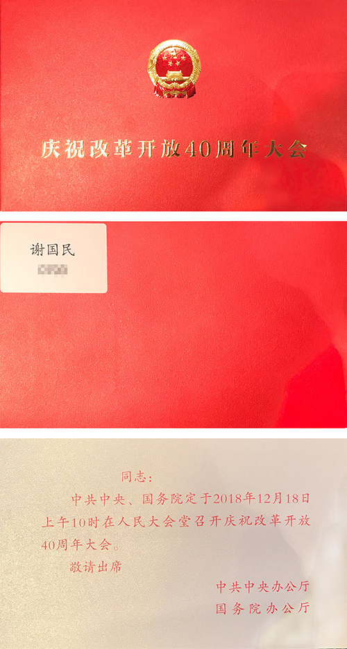 上午10時,慶祝改革開放40周年大會在人民大會堂舉行。中共中央總書記、國家主席、中央軍委主席習近平出席大會并發表重要講話。謝國民資深董事長應中共中央辦公廳、國務院辦公廳邀請出席大會。