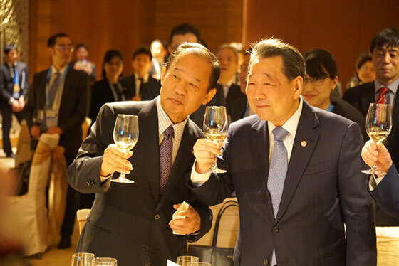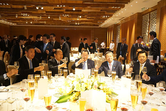 25日晚,謝國民資深董事長在北京宴請了日本首相特使、自民黨干事長二階俊博等70位前來參加第二屆“一帶一路”國際合作高峰論壇的日本代表團。