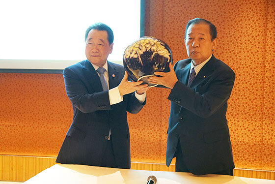 宴會上,雙方就EEC高鐵項目進展情況等進行了深入交流。謝國民資深董事長希望未來正大集團能夠與更多的日本企業展開多領域合作。二階俊博還向謝國民資深董事長贈送了精美禮品。正大集團CEO謝镕仁,資深副董事長楊小平,資深執行副總裁、農牧食品企業中國區資深副董事長謝毅等出席宴會。