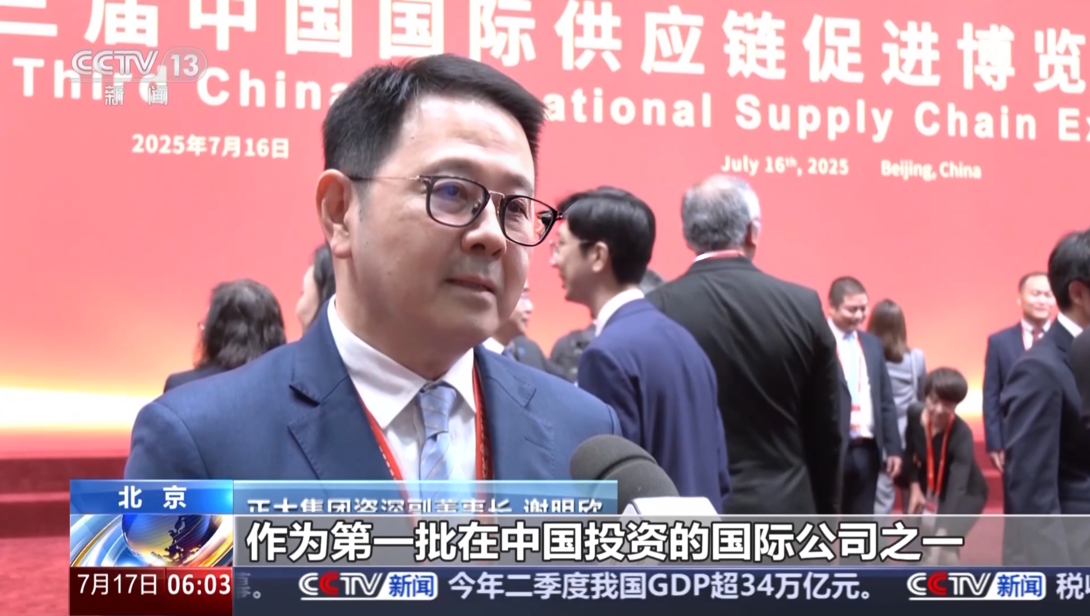 正大集團資深副董事長謝明欣應邀參加第三屆鏈博會開幕式,并在開幕式現場接受央視記者采訪。