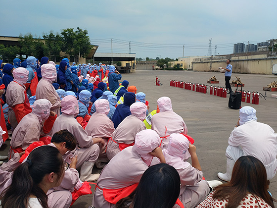 演練于上午11時正式開始,模擬油炸機起火,火勢蔓延迅速,直接威脅公司的生產及人員安全,公司應急指揮部啟動應急預案。此次演練分三個部分:第一部分是自救、疏散、報警、接警;第二部分是消防滅火、搶救人員、傷員救護;第三部分是消防器材的使用和心肺復蘇技能演示培訓及實際操作。