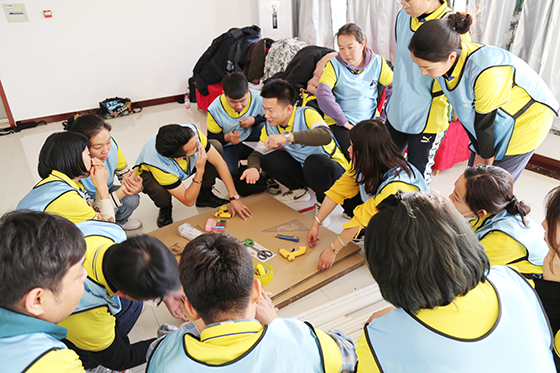 活動在整齊劃一的行進番號和隊列動作中拉開了帷幕。現場大家士氣高昂,隊員們被隨機分為3組,每組13個人,經過討論選出隊長,制定出專屬團隊宣言與logo,各隊長帶領團隊依次入場并進行風采展示。在團隊成員默契配合、團結協作、相互鼓勵下,各團隊依次完成了目標市場、挑戰60秒、盲人方陣、F1賽車四個闖關項目。大家深深體會到,一個人的力量是有限的,一個團隊的力量是堅不可摧的,團隊的成功需要每一個成員的共同努力!