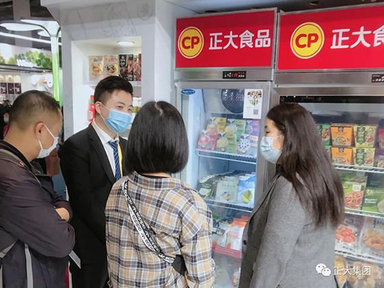 CPM展臺工作人員向觀眾介紹正大調味品等產品。