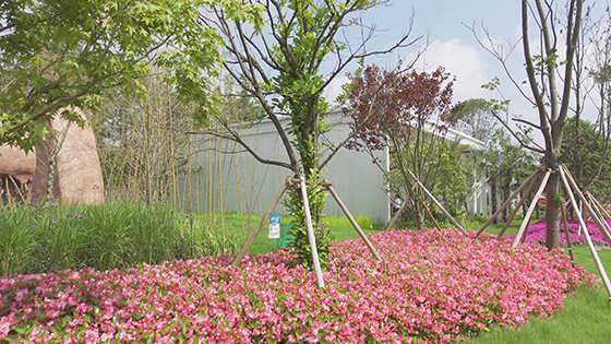 種植事業團隊駐扎花博園區四個多月,不斷對正大展館的細節進行調整優化,添加植物標識牌、在入口處加入防滑墊、設置安全游園警示牌等細節措施。