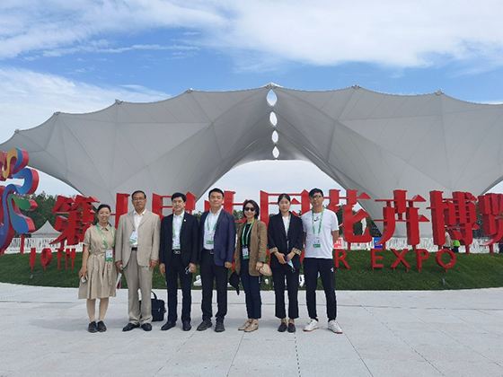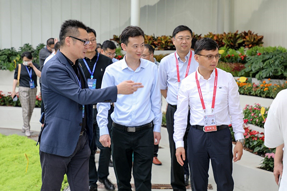 開幕式當天,正大集團農牧食品企業中國區副董事長王金文(左三)、葉劍(左四),總部市場部資深副總裁郭悅楊(左五),種植事業副總裁關焱(左二)等領導和同事參加中國花博會開幕式,并到正大展館進行考察、指導工作。