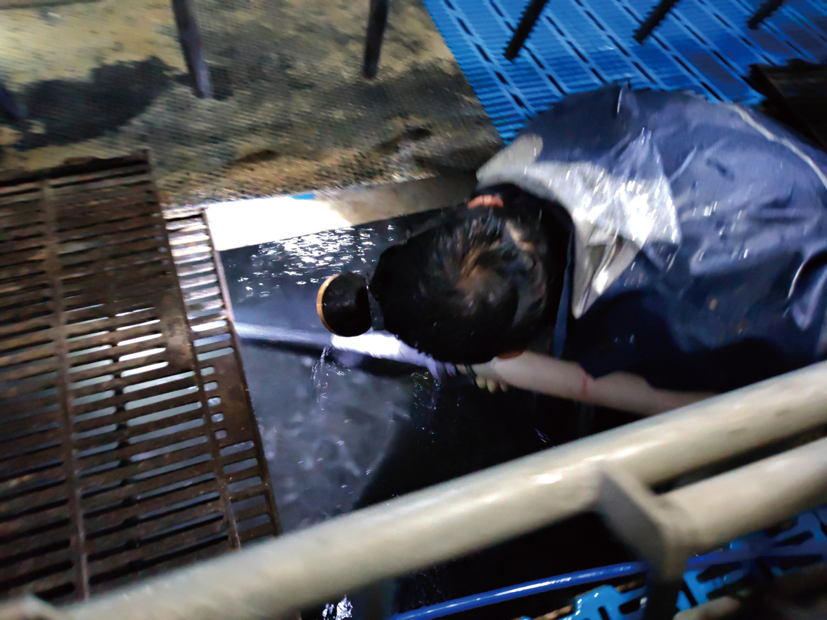 ▲改進方法使用大水流沖洗糞溝