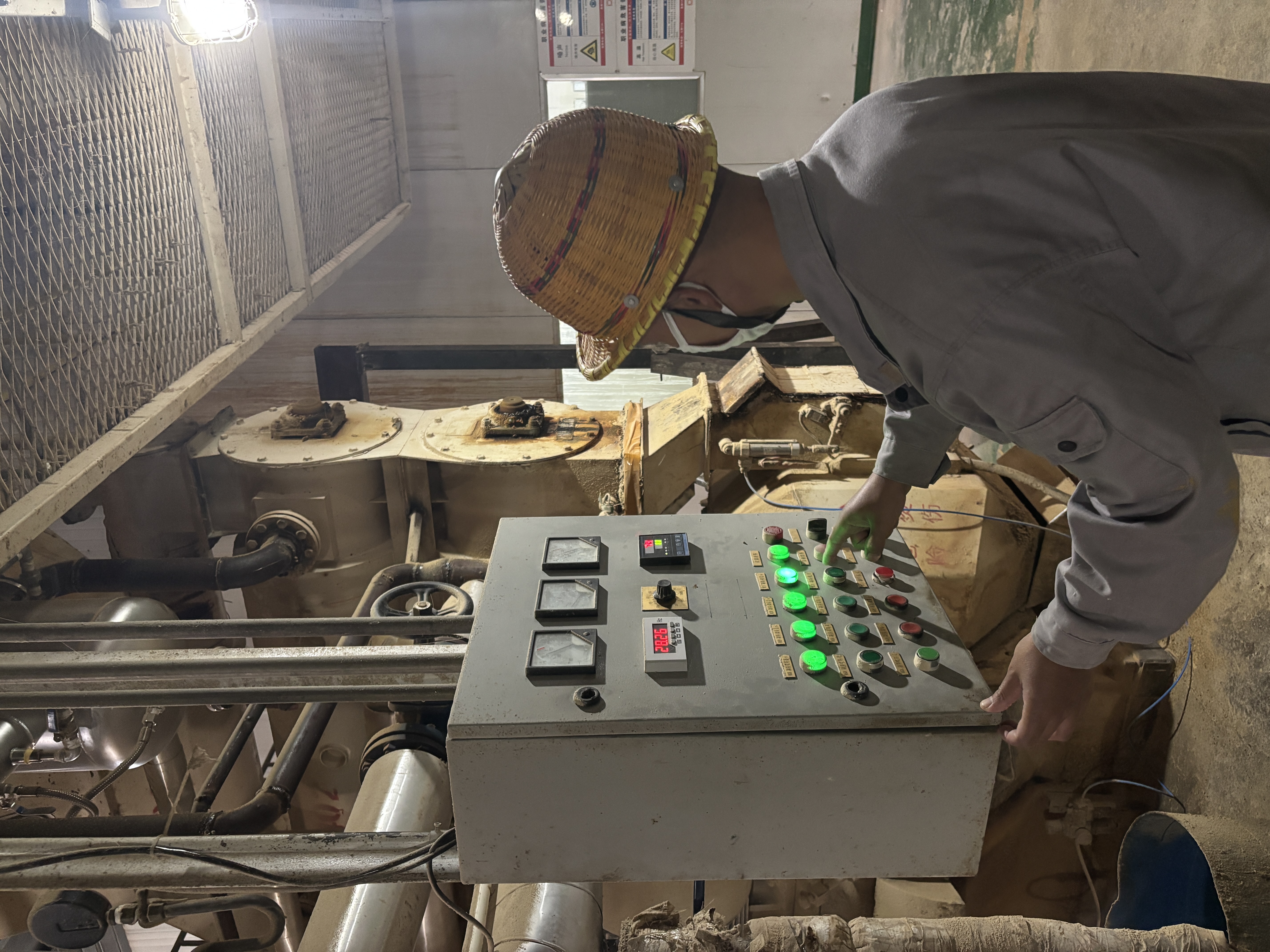 ▲徐輝調整制粒機喂料參數。