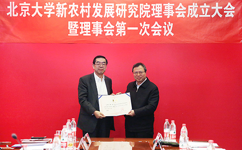北京大學新農村發展研究院第一屆理事會由18位成員組成,分別來自國家有關部委、聯合國糧農組織、中國科學院、中國社會科學院、中國農科院、北京大學、中國農業大學、正大集團、阿里巴巴、方正集團等。北京大學原副校長王杰出任理事長,發展中國家科學院院士、北京大學現代農學院教授黃季焜任副理事長。