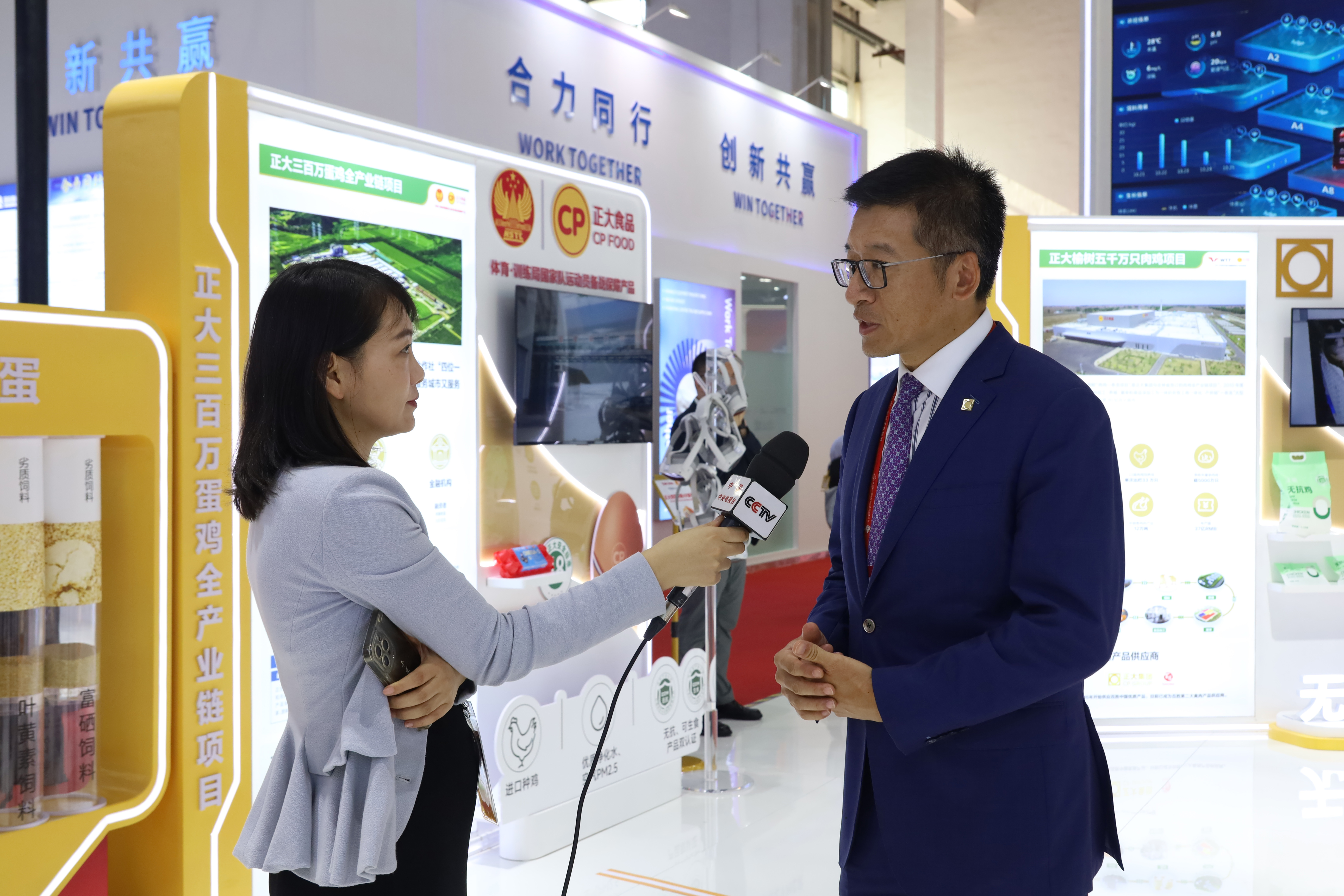 正大集團謝明欣資深副董事長接受中國國際電視臺CGTN記者采訪。