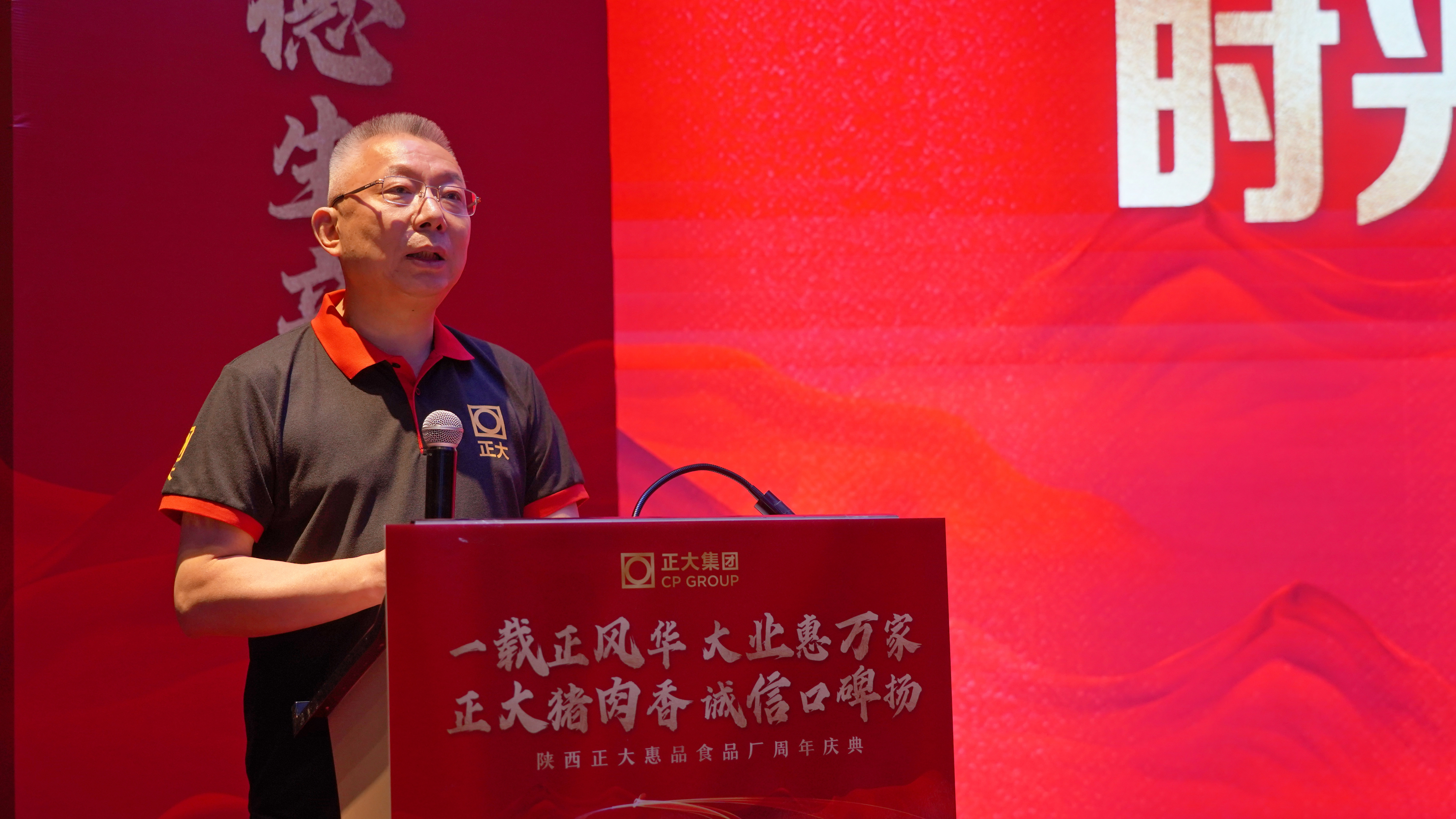 7月1日,在舉國歡慶中國共產黨成立104周年的光輝時刻,陜西正大惠品食品廠也迎來了意義非凡的一周歲生日。一場以“一載正風華,大業惠萬家;正大豬肉香,誠信口碑揚”為主題的周年慶典盛大舉行。政府領導、行業協會代表、正大集團陜西區高層、核心合作伙伴、全體員工及各界嘉賓200余人齊聚一堂,在莊重與熱烈的氛圍中,共同回顧奮斗征程,擘畫發展藍圖,致敬時代機遇。