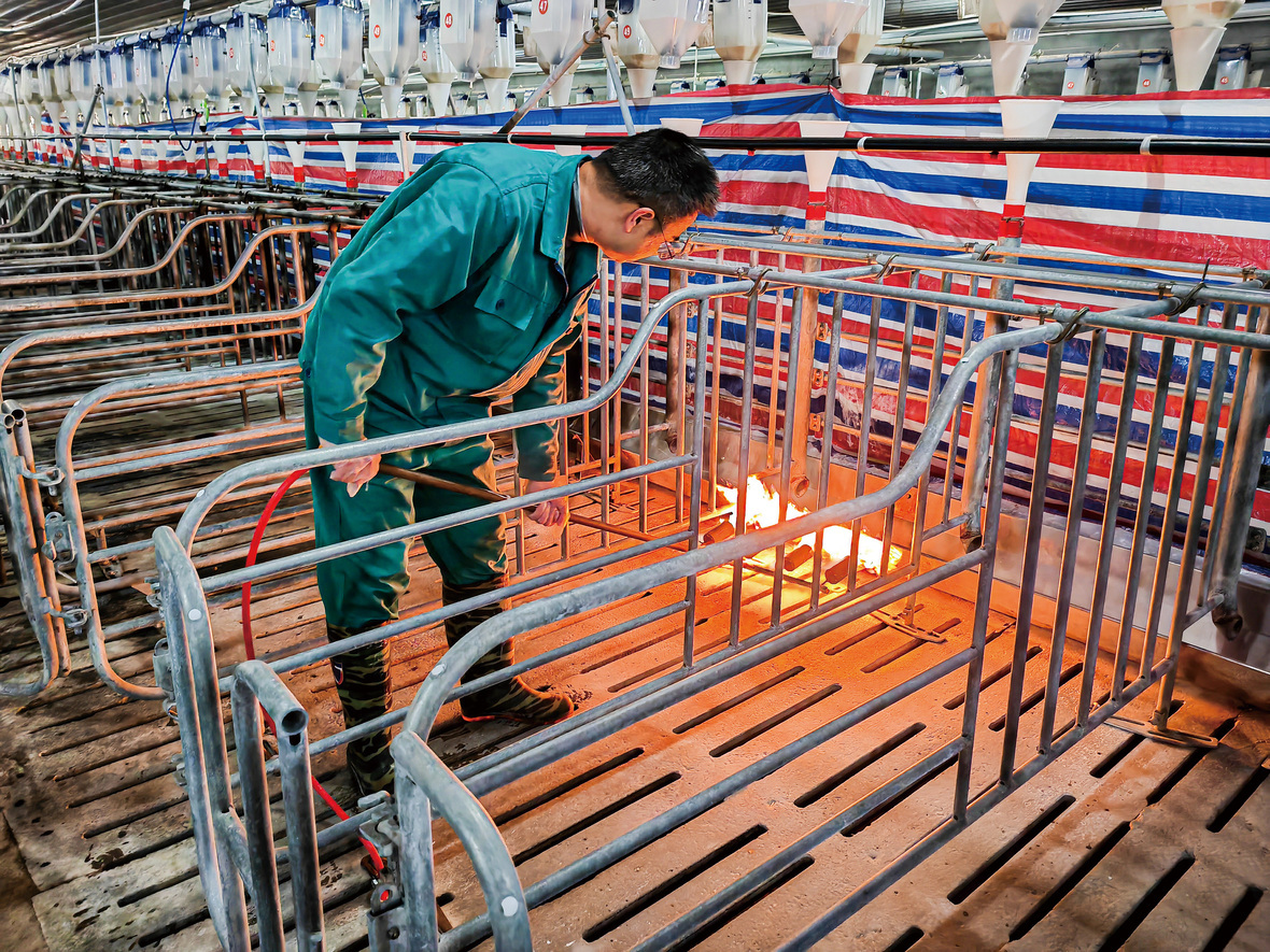 ▲定位欄火焰消毒,嚴格執行集團標準的洗消程序