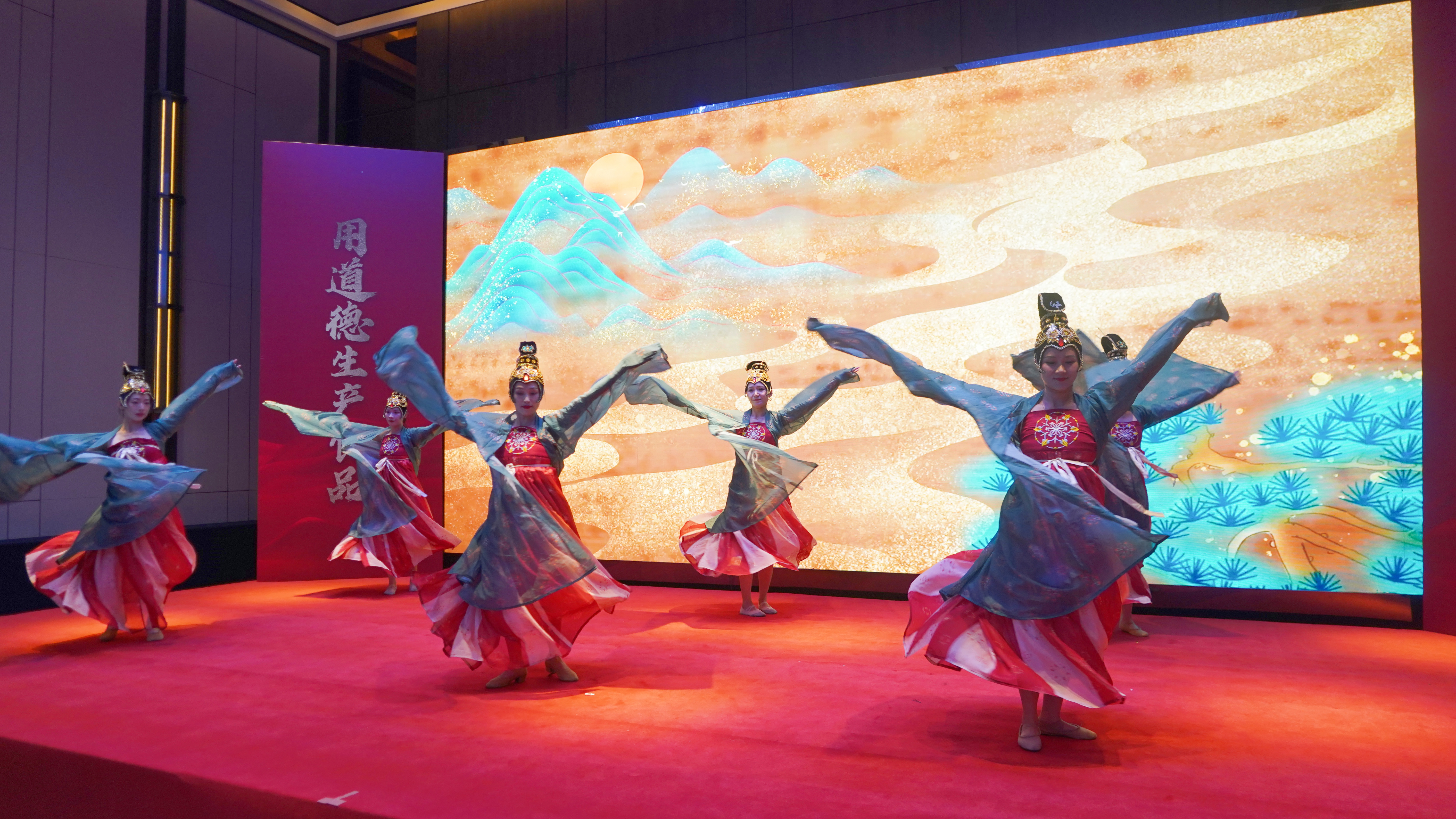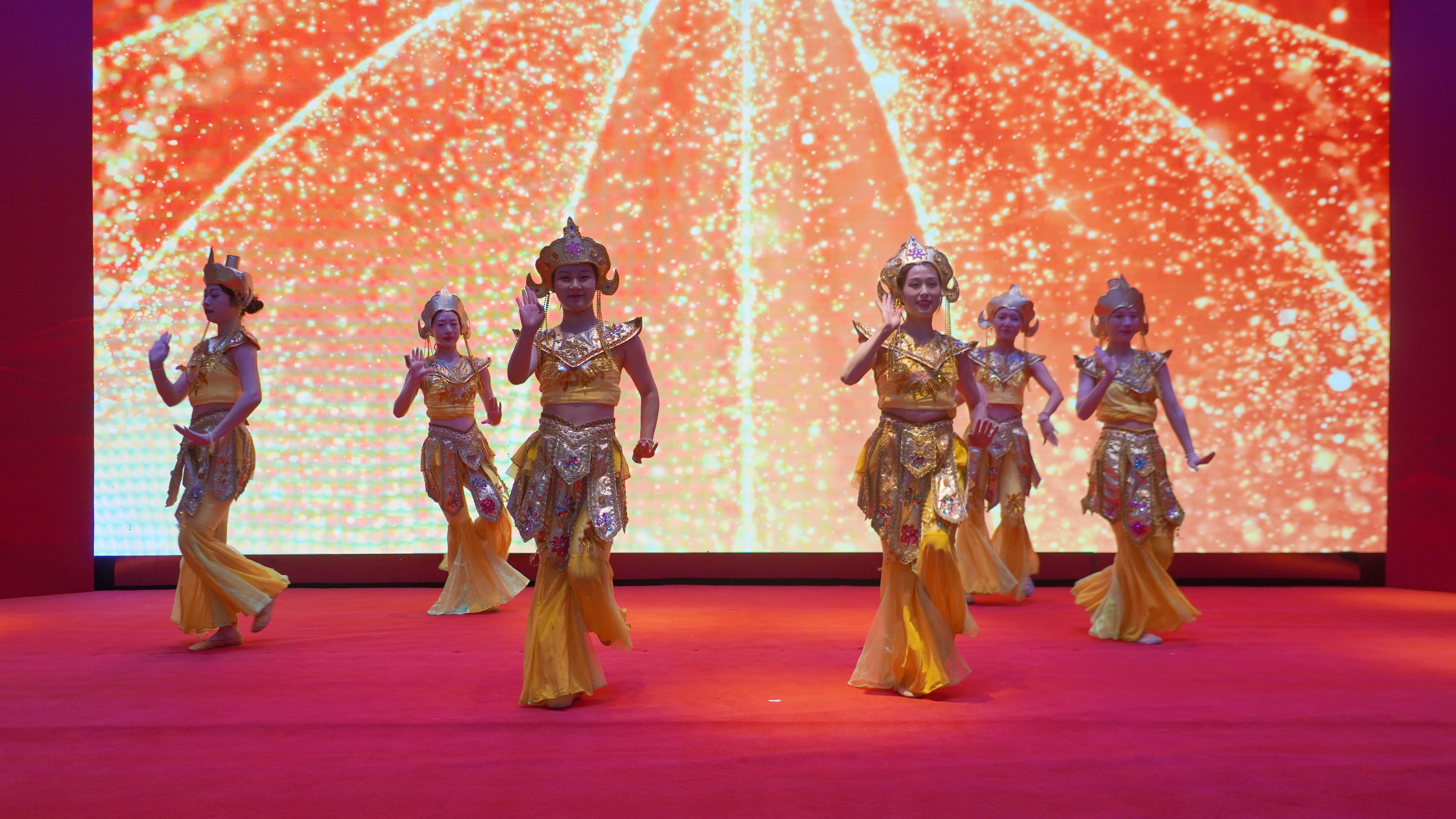 在共享晚宴佳肴的同時,慶典精心奉上了一場融匯中外的視聽盛宴。充滿異域風情的泰國傳統舞蹈,舞者們身著金線刺繡的紗籠,婀娜的舞姿仿佛將臺下觀眾帶到了湄南河畔,生動詮釋著正大集團“利國、利民、利企業”的三利原則在中泰友誼橋梁上的枝繁葉茂。技藝精湛的川劇變臉表演,瞬息萬變的臉譜令人嘆為觀止,象征著惠品在市場風云中勇于變革、敢于創新的魄力。唯美典雅的《霓裳羽衣舞》,舞者身披霓虹羽衣,舞步翩躚如風似云,不僅展現了中華傳統藝術的瑰麗,更象征著惠品人對卓越品質和精致生活的不懈追求。最后,惠品銷售團隊以一首激昂豪邁的《眾人劃槳開大船》唱響了團結奮進的強音,吹響了面向未來的沖鋒號角。